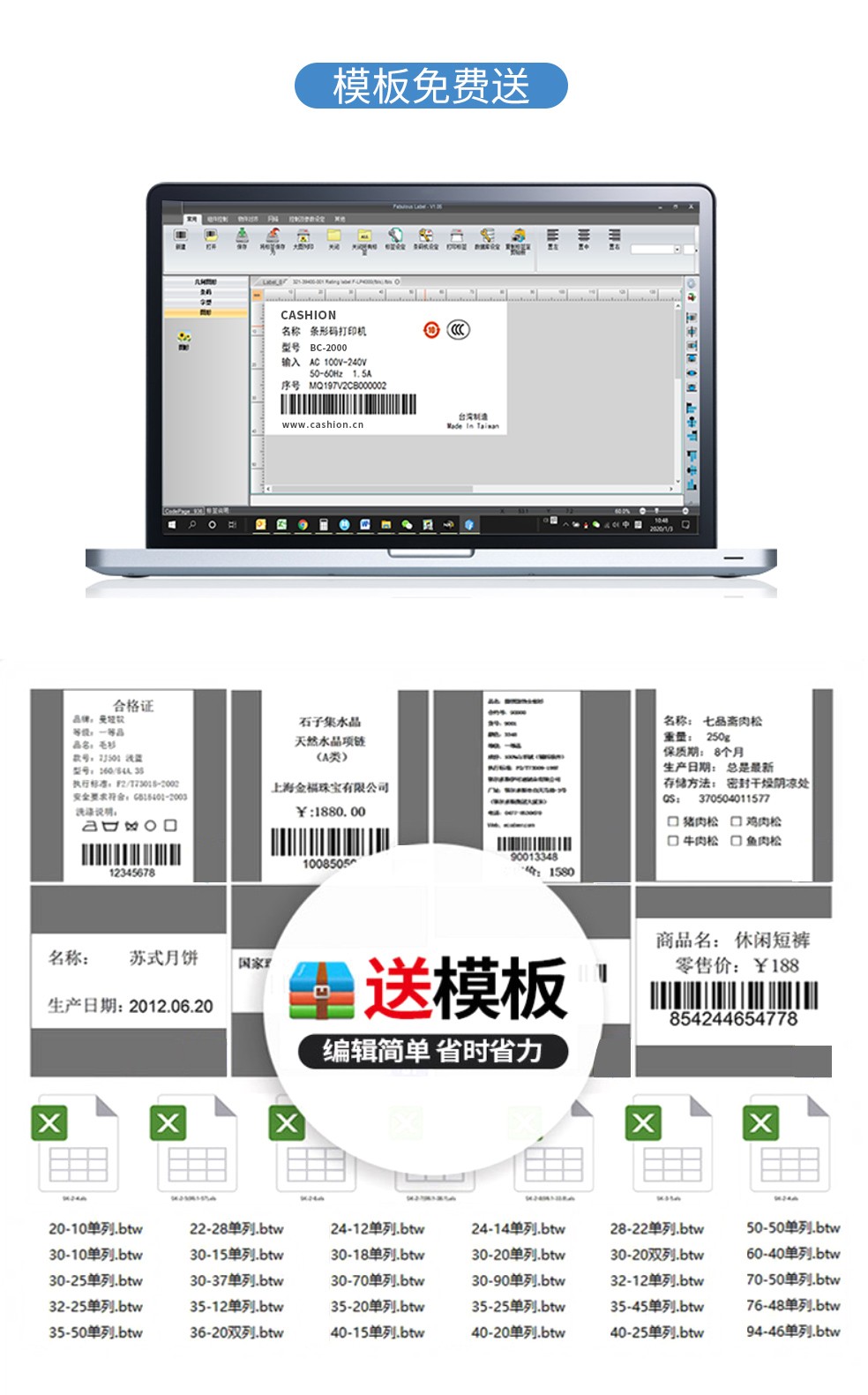 - 自动感测节省使用耗材的CASHION C-204条码打印机