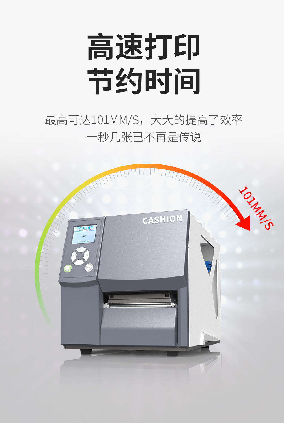 - 自动感测节省使用耗材的CASHION C-204条码打印机
