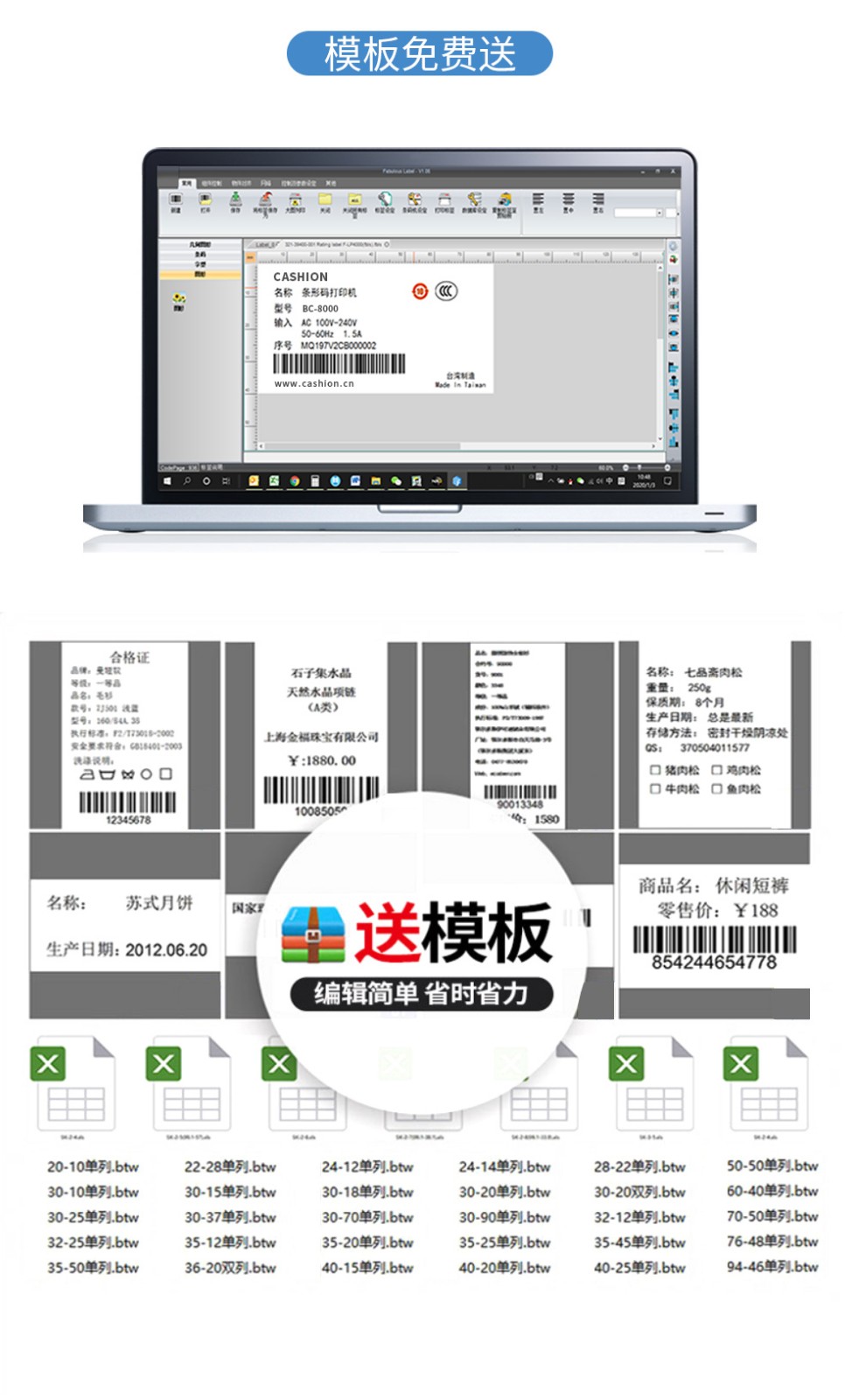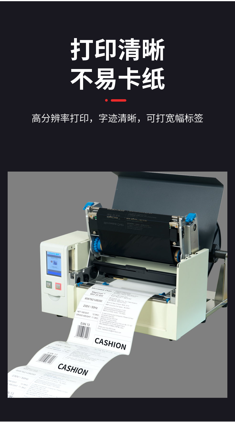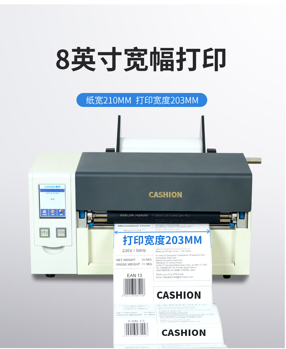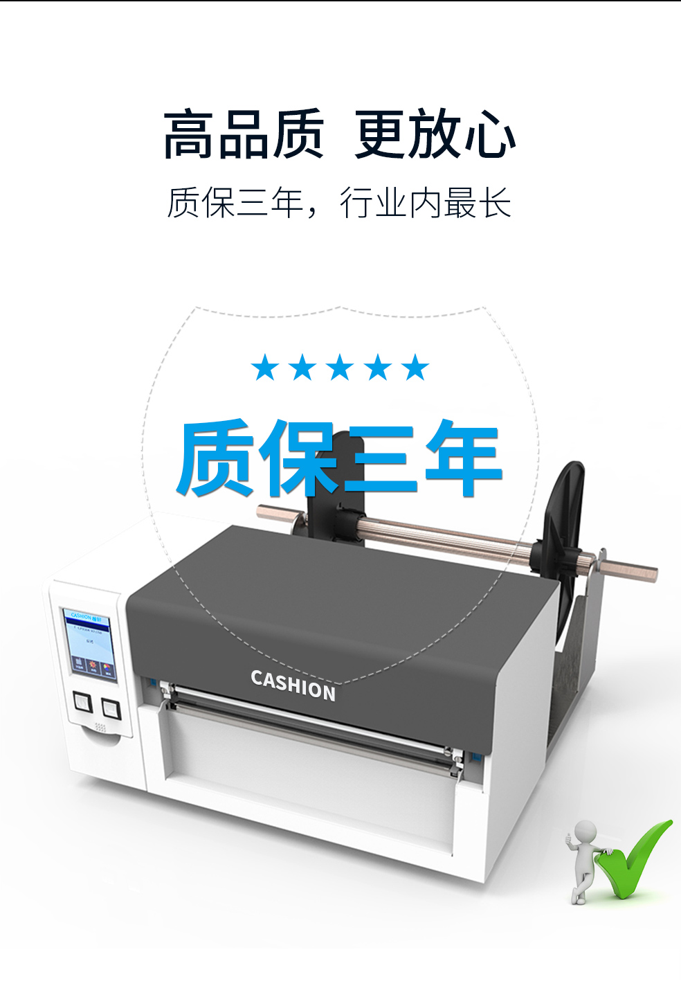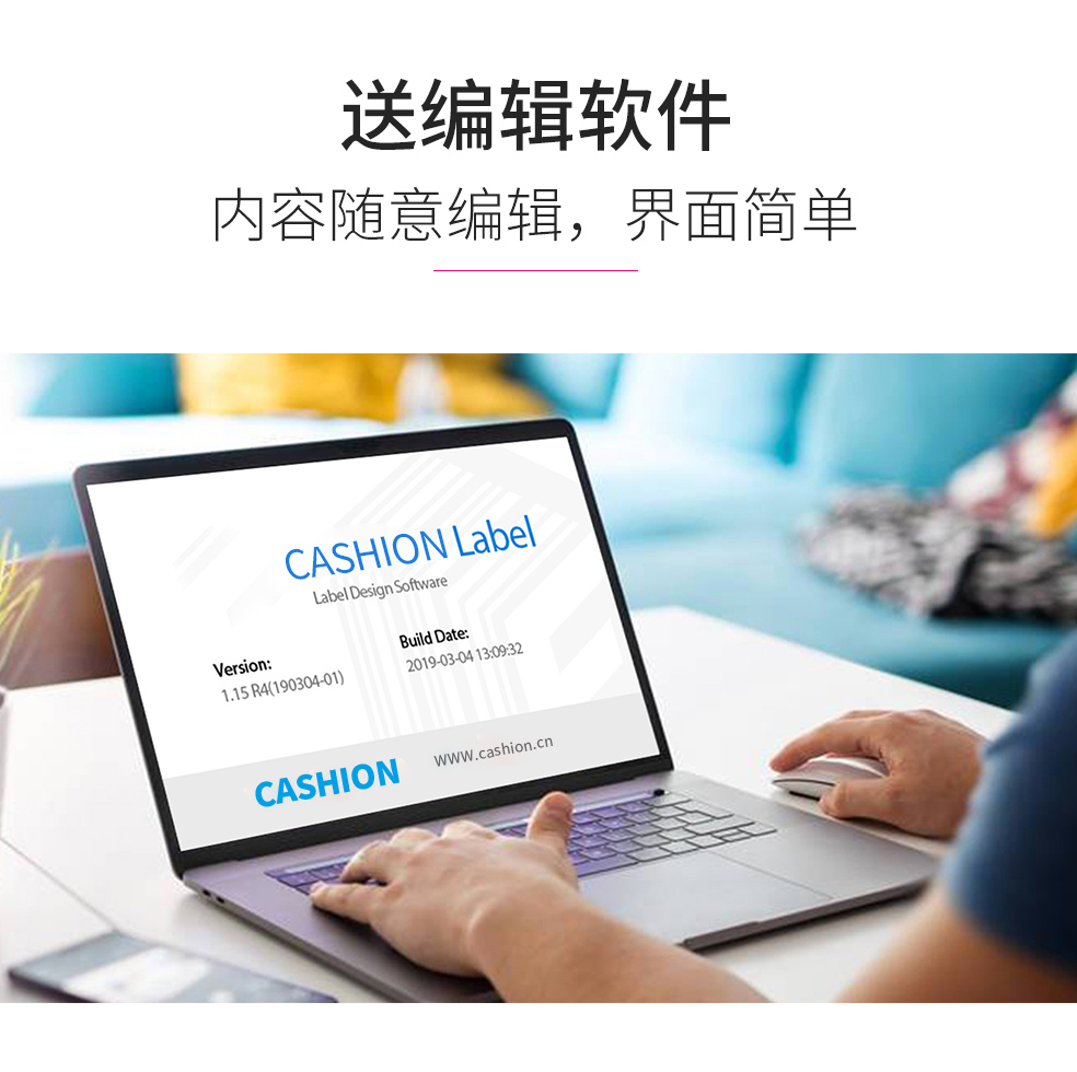- 自动感测节省使用耗材的CASHION C-204条码打印机