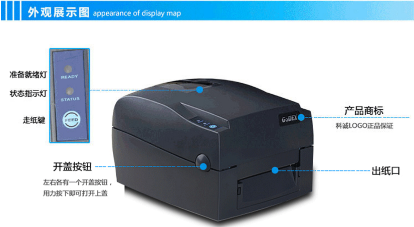 科诚(GODEX)G500U条码打印机操作简单,价格经济实惠,机器美观便捷精巧-外观颜色时尚典雅,拆装简易,全能-适用于水洗唛,热敏纸,哑银纸,铜版纸等.蓝狮在线登录注册条码为您介绍物流行业最爱的打印机.